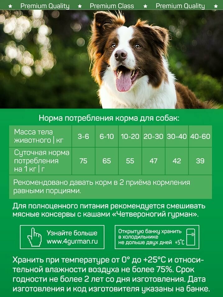 Влажный корм для собак Четвероногий Гурман Мясное ассорти с рубцом 100г информация: