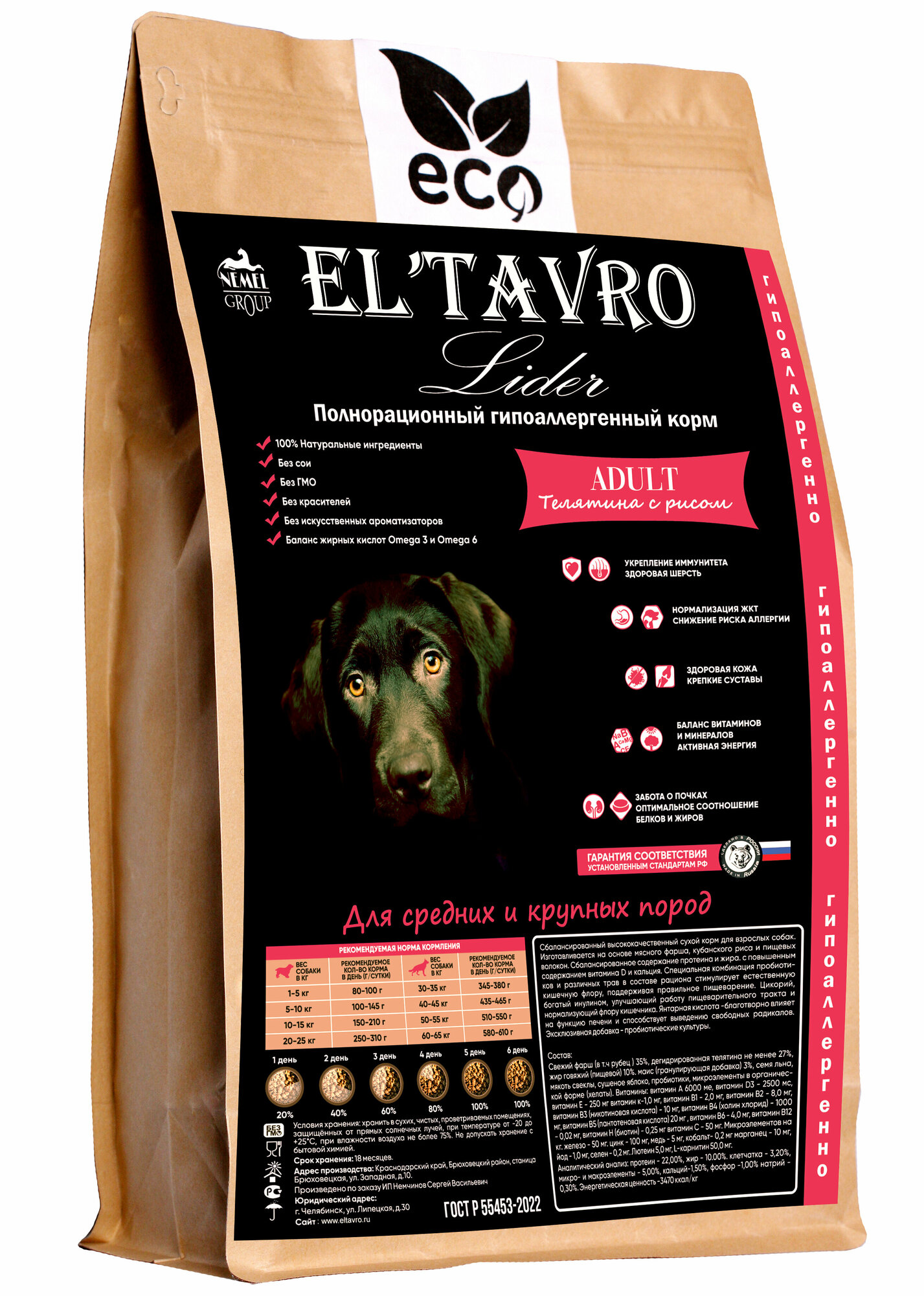 Сухой корм для собак 2кг ELTAVRO Lider (эльтавро) Телятина с рисом/гипоаллергенный/без курицы информация: