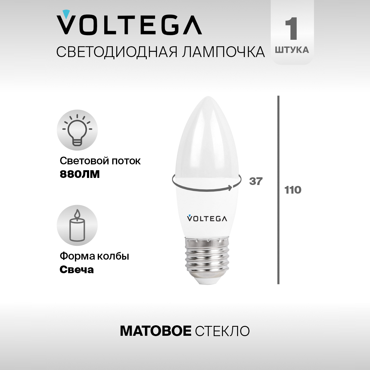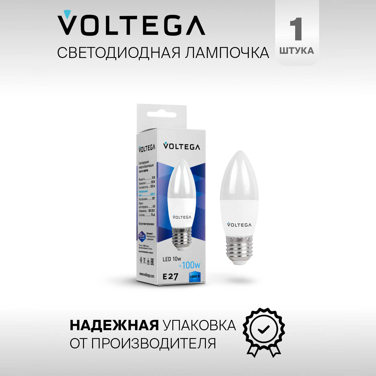 Лампочка светодиодная E27 форма свеча матовая 10W нейтральный свет Voltega Simple Candle 4000K 1 штука 210 ₽