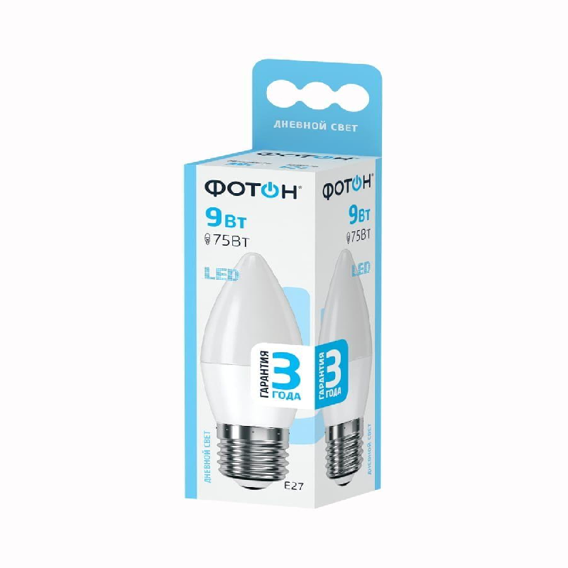 Лампа светодиодная фотон E27 9Вт, холодный свет, свеча информация:
