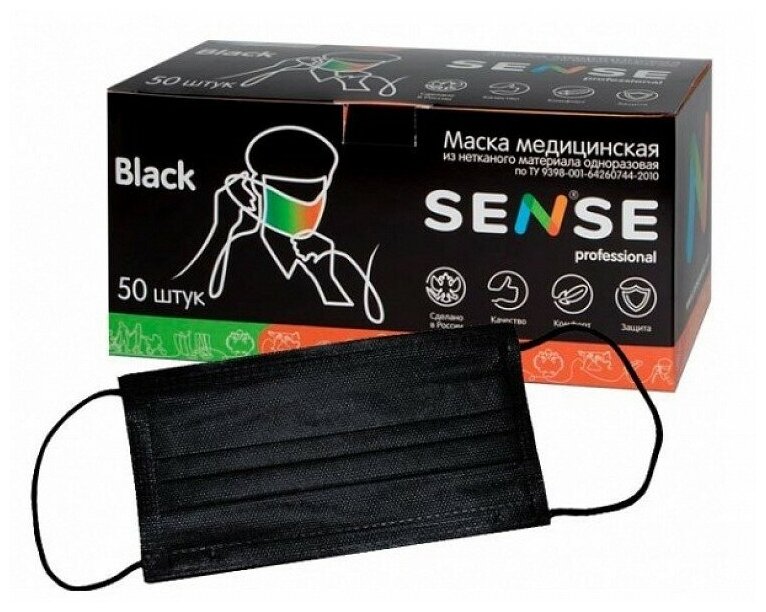Маска медицинская из нетканого материала одноразовая черная Sense/Сенс 50шт информация: