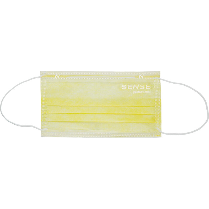 Маска медицинская одноразовая Sense, трехслойная, желтая, 50 шт в уп