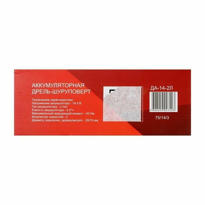 Дрель-шуруповерт 'Ресанта' ДА-14-2Л, 14.4 В, 2 Ач, Li-Ion, 45 Нм, 400/1400 об/мин подарок информация: