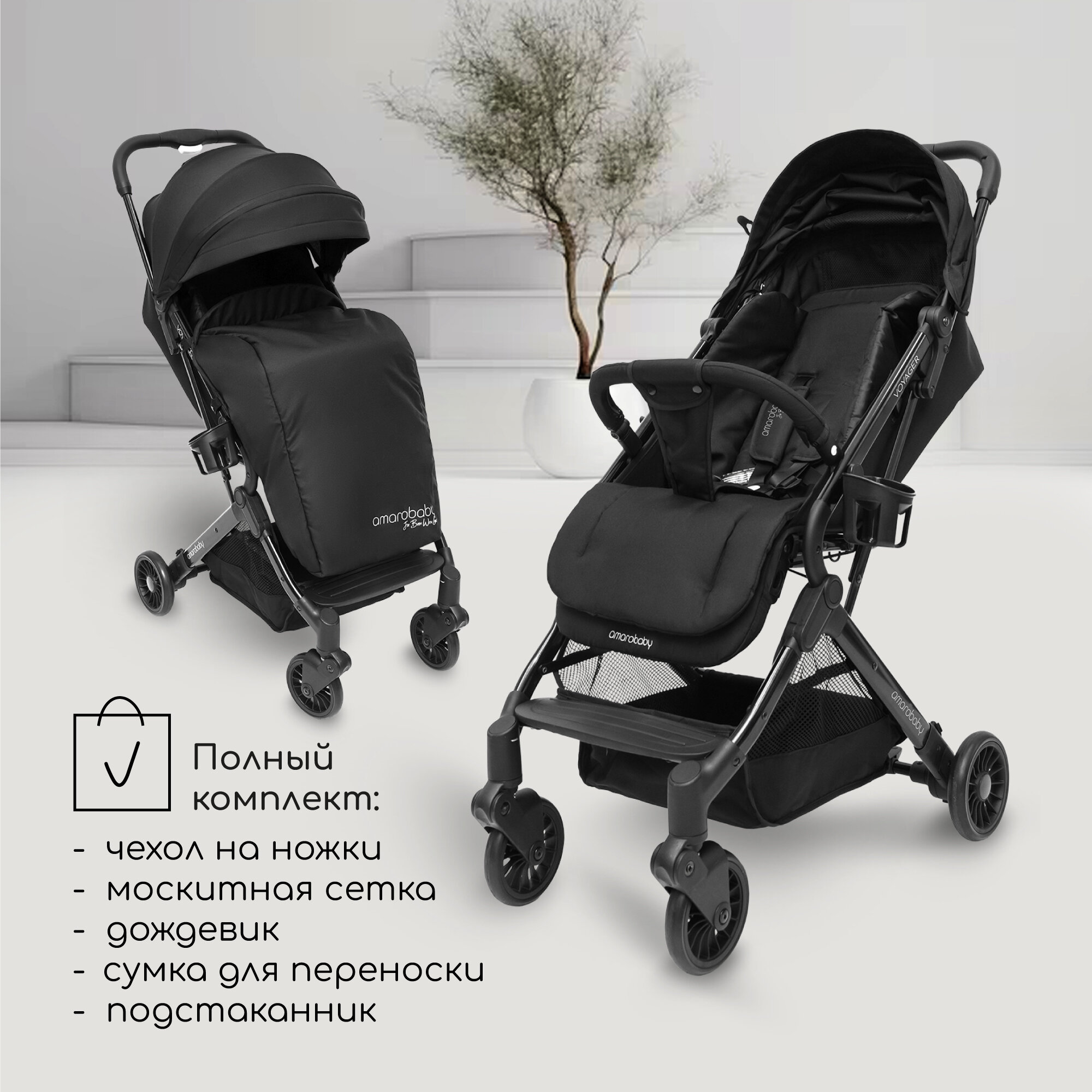 Прогулочная коляска AMAROBABY VOYAGER, чёрный