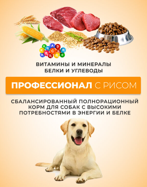 Терагав Корм сухой д/взрослых собак Профессионал с рисом 13кг информация: