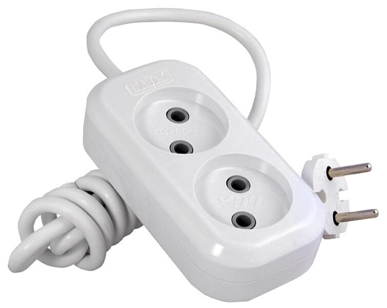 Удлинитель LUX У2-О-03 двухместный без заземления, 250 В 10 А, 3 м (4606400414490)