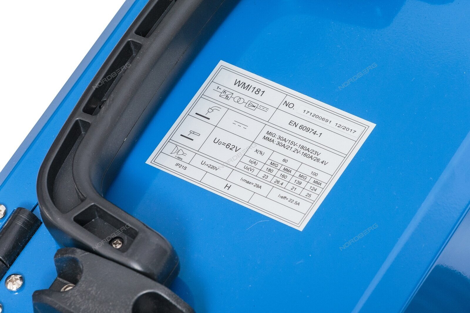 NORDBERG WMI181 Аппарат сварочный инверторный mig+mma, 220v