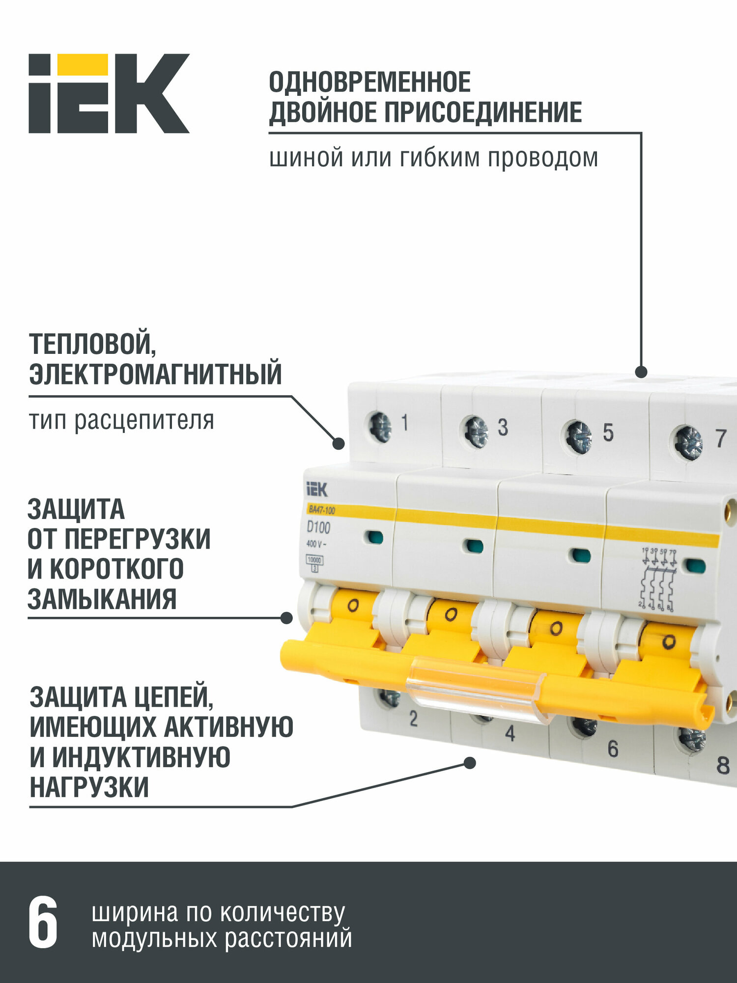 Выключатель автоматический ВА47-100 4Р 100А 10кА D IEK информация: