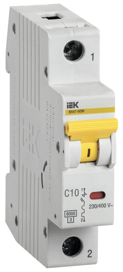 Выключатель автоматический модульный 1п C 10А 6кА ВА 47-60 ИЭК MVA41-1-010-C информация: