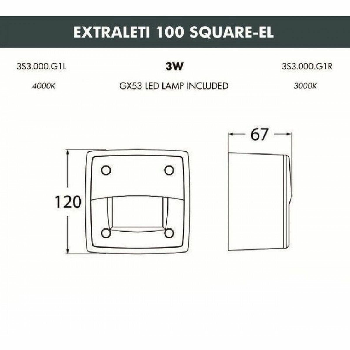 Светильник уличный настенный FUMAGALLI EXTRALETI 100 Square-EL 3S3.000.000.LYG1L 4 034 ₽