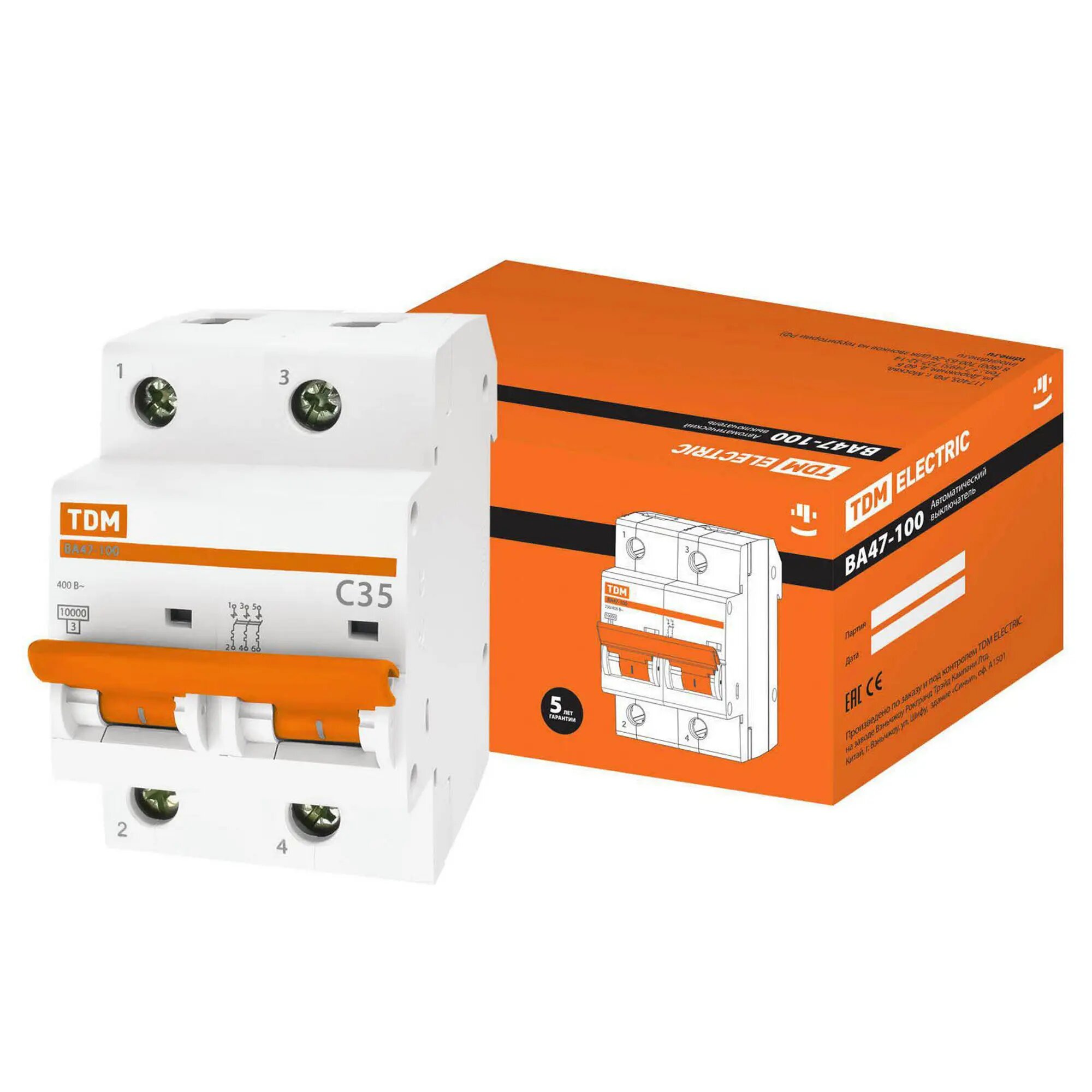 Авт. выкл. ВА47-100 2Р 35А 10кА х-ка С TDM сн/пр (в упаковке 1 шт.)