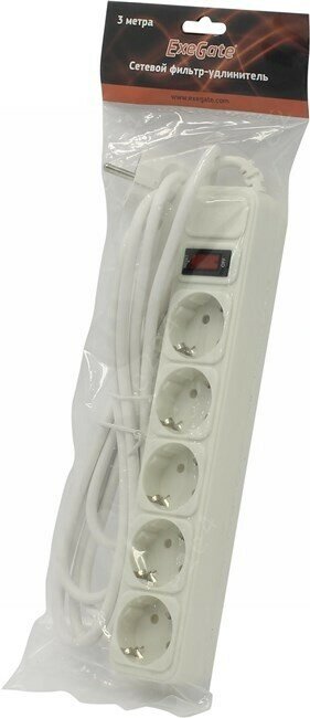 Exegate Ex221187rus Сетевой фильтр Exegate Sp-5-3w (5 розеток, 3м, евровилка, белый) .