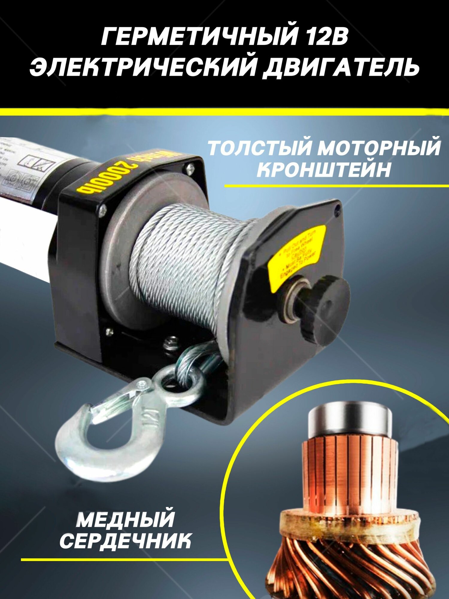 Лебедка электрическая со стальным тросом 2000 LBS Electric Winch грузоподъемность 907 кг информация: