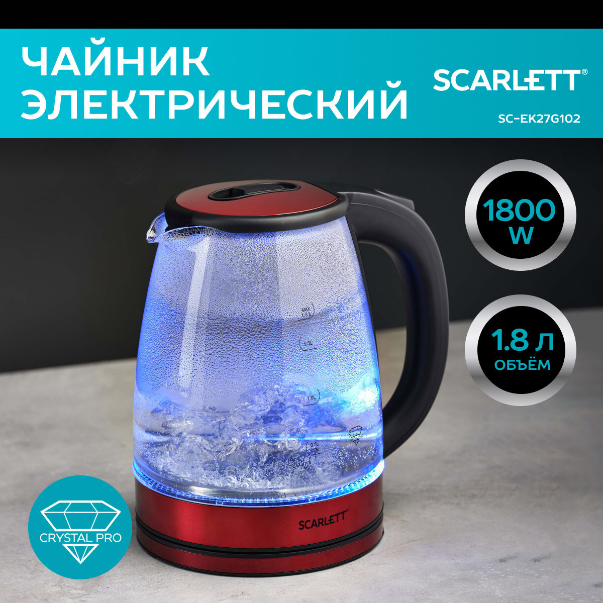 Отзывы на Чайник Scarlett SC-EK27G102,1800 Вт, 1.8 л, корпус-стекло, краcный
