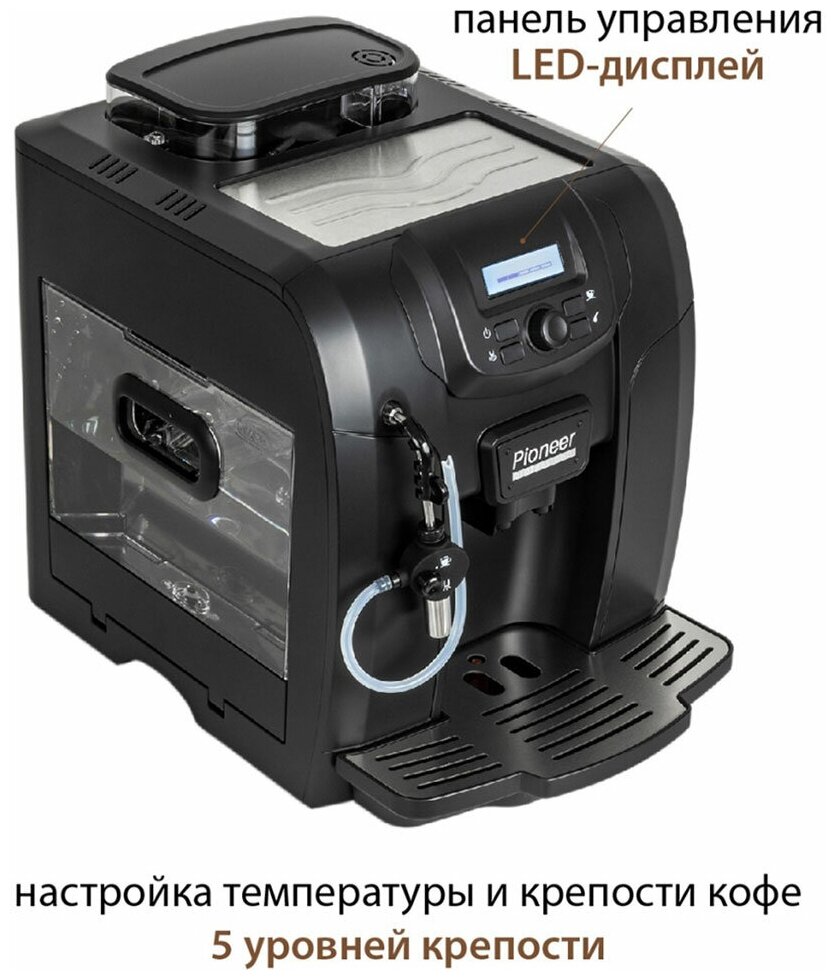 Кофемашина Pioneer CMA016 со встроенной кофемолкой, профессиональной системой двойного бойлера, 5 уровней крепости кофе, 3 степени помола, 1250 Вт информация: