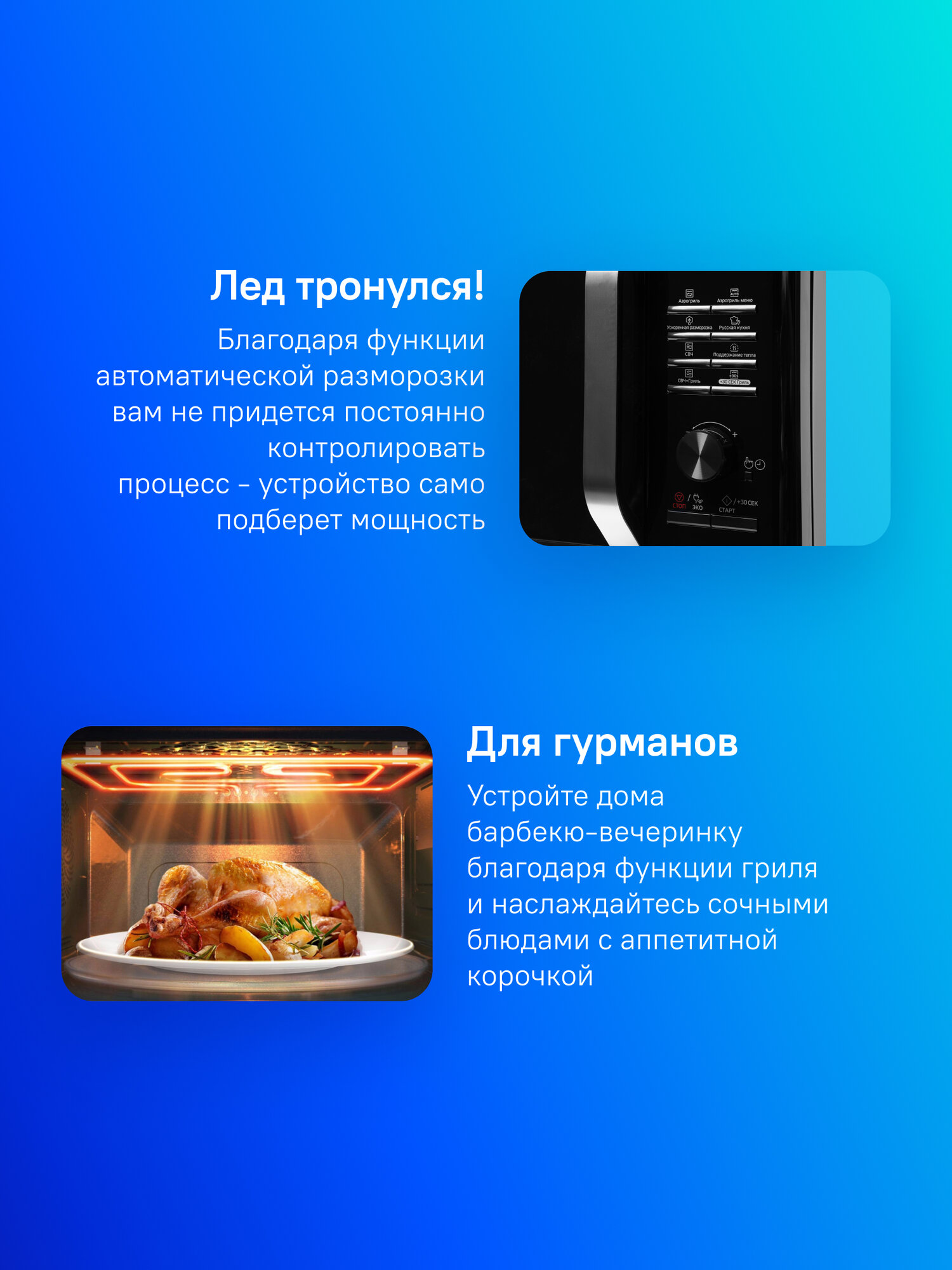 | Режимы работы | гриль / микроволны + гриль / разморозка |