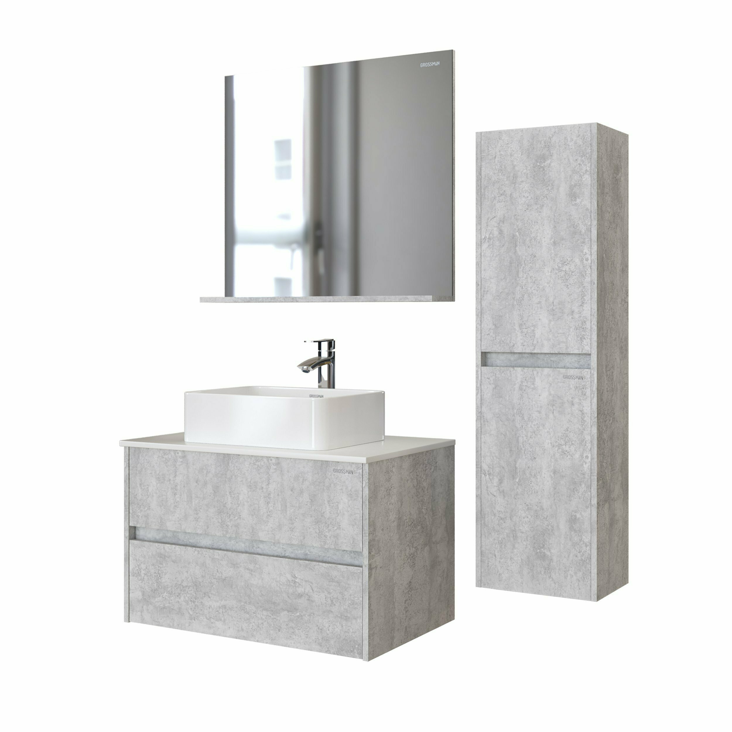 Отзывы на Тумба под раковину GROSSMAN "ЭДВАНС-80 см" с 2-я ящ. цемент светлый 108010