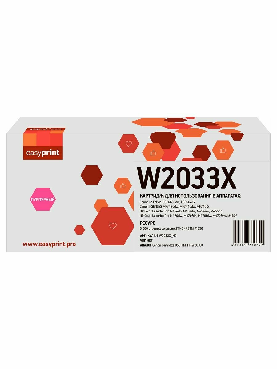 Easyprint Расходные материалы W2033X Картридж LH-W2033X NC для HP CLJ Pro M454 455 M479 480 Canon LBP663 664 MF742 744 746 6000 стр. пурпурный, без информация: