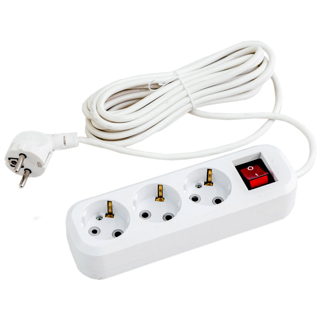 Удлинитель сетевой "TOKER", 3 гнезда, длина 5 м, без заземления, 3R-5, в индивидуальной упаковке