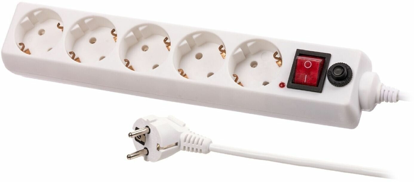 Сетевой фильтр TDM СФ-05В, 5 гнезд, с заземлением и выключателем, ПВС 3х0,75мм, 3м