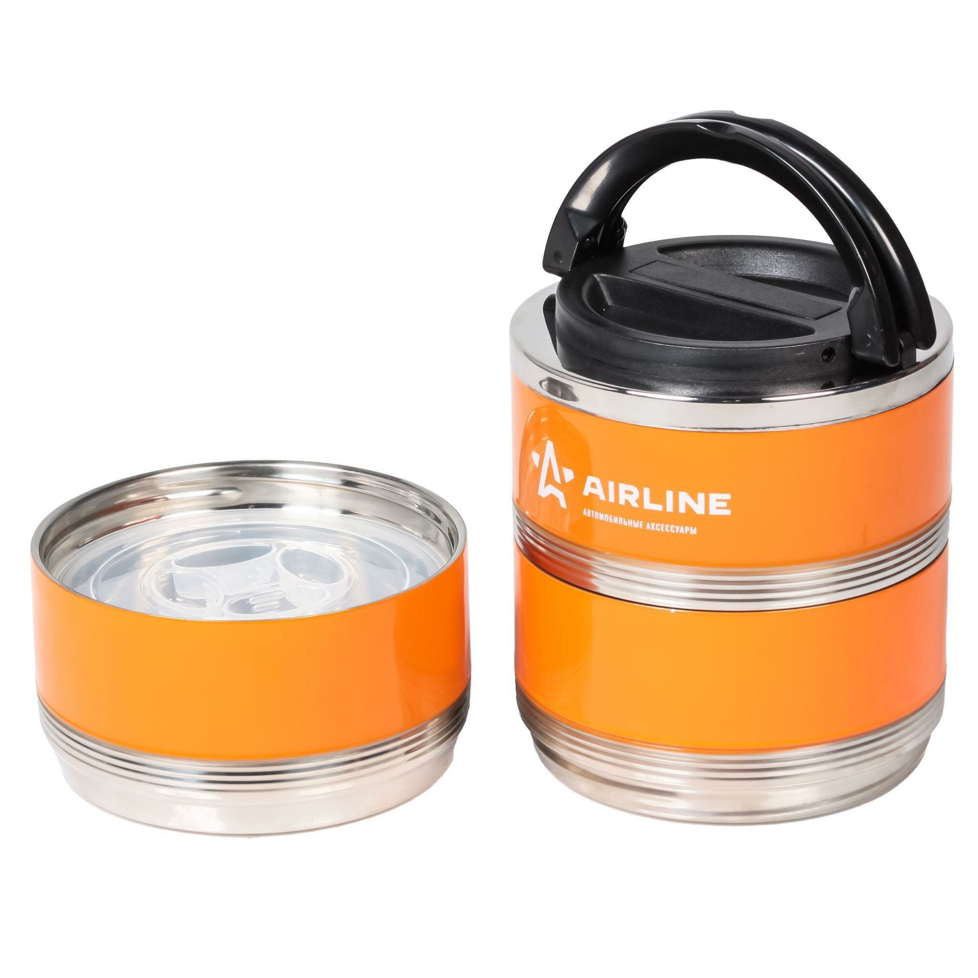 AIRLINE ITT03 Термос ланч-бокс для еды с ручкой, нерж. сталь (304), 3 контейнера, 2,1 л., оранж./черн.