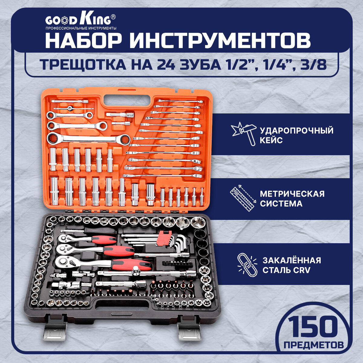 Набор инструментов 150 предметов 1/4" 3/8" 1/2" трещотка GOODKING K-10150, tools для дома, для автомобиля информация: