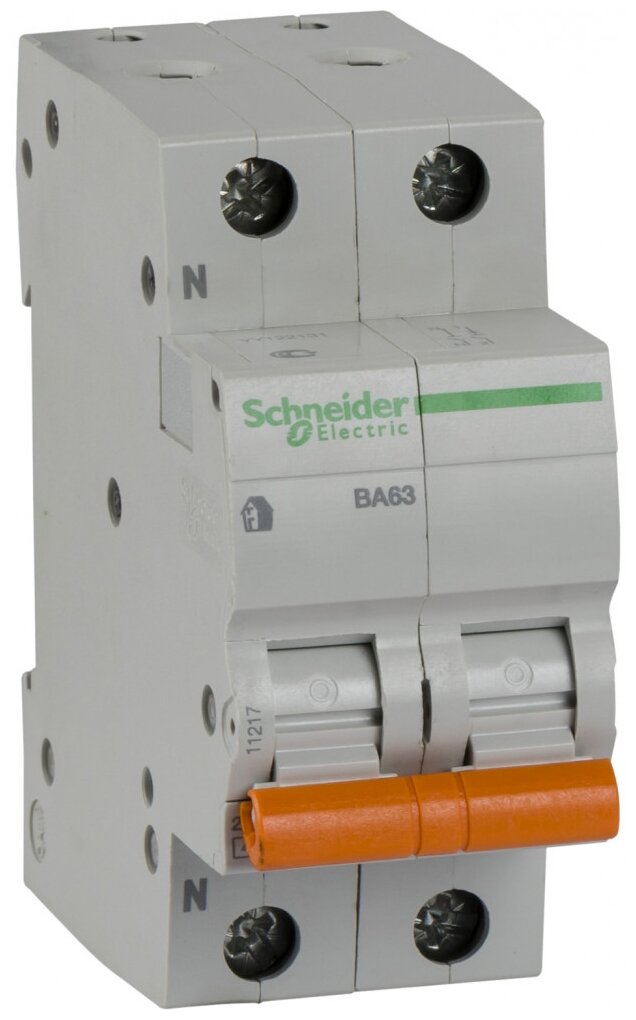 Автоматический выключатель SCHNEIDER ELECTRIC 2p (1P+N) C 25А 4.5кА BA63 домовой 11215 1 450 ₽