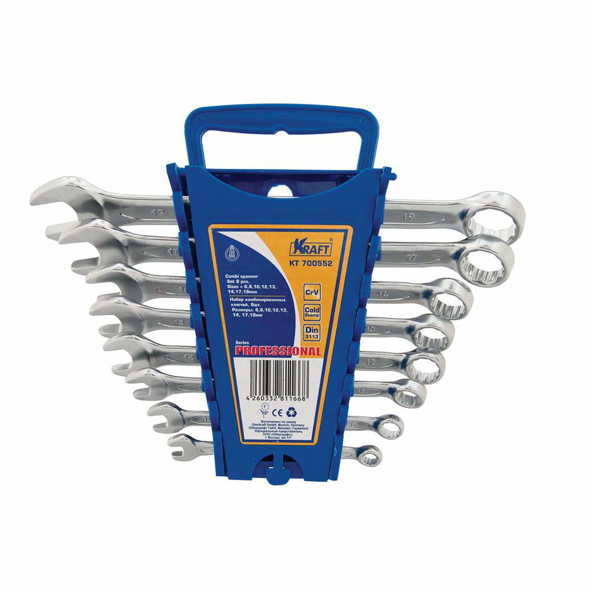 Набор комбинированных ключей 8шт: 6 8 10 12 13 14 17 19мм пластиковый держатель KRAFT KT 700552