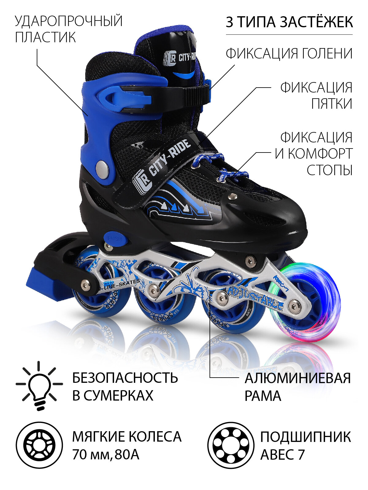 10 цен на Роликовые коньки детские ТМ CITYRIDE, PU колеса, первое колесо светится, подшипники ABEC 7, размер М (34-38), раздвижные, JB0206354