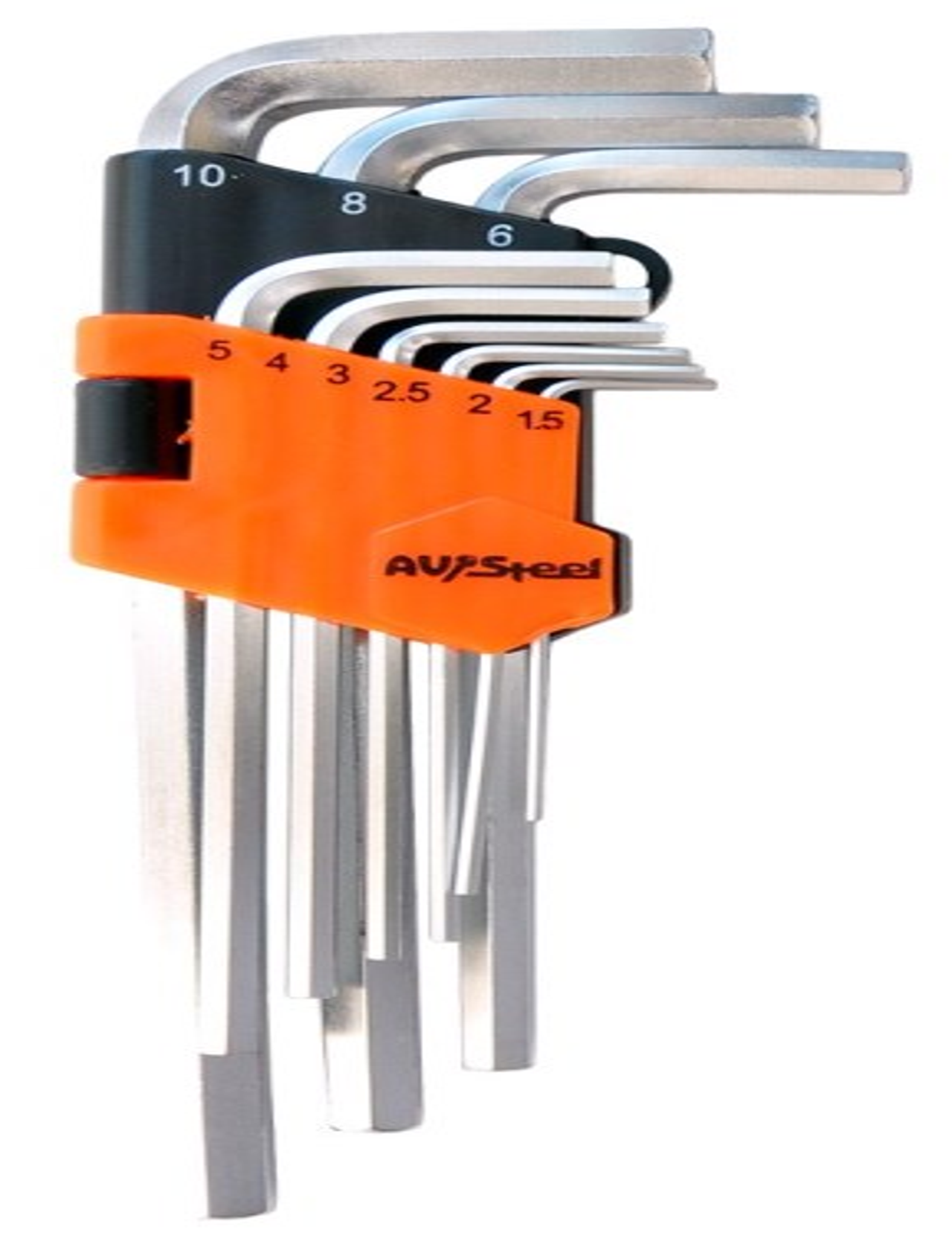 AV Steel Набор ключей Г-образных HEX экстрадлинных 1,5-10мм 9 предм. AV-363109 информация: