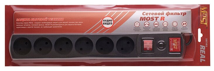 Сетевой фильтр Most R, 5 м (6 розеток), черный информация: