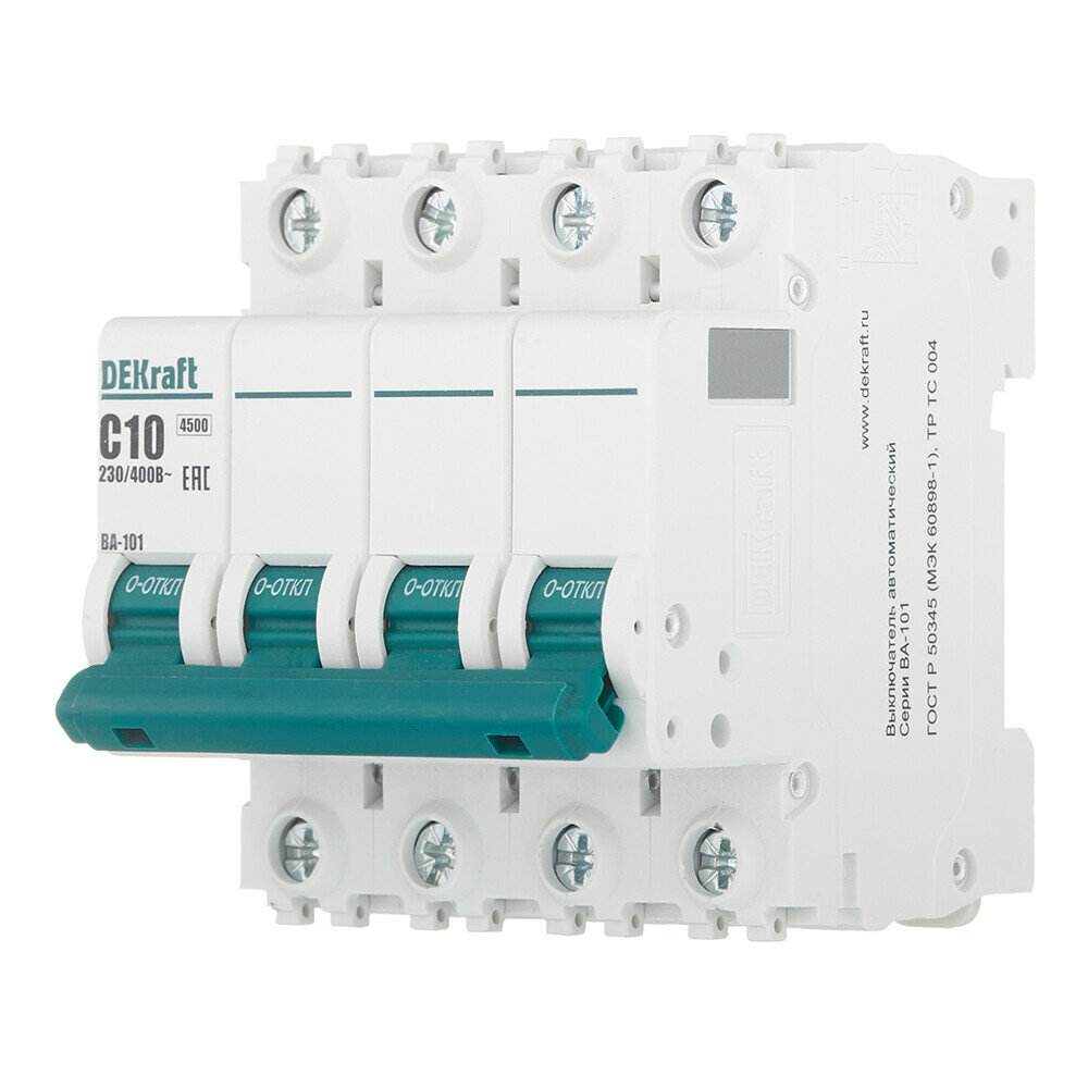 10 цен на Автоматический выключатель Dekraft BA-101 (11089DEK) 4Р 10А тип C 4,5 кА 230-400 В на DIN-рейку
