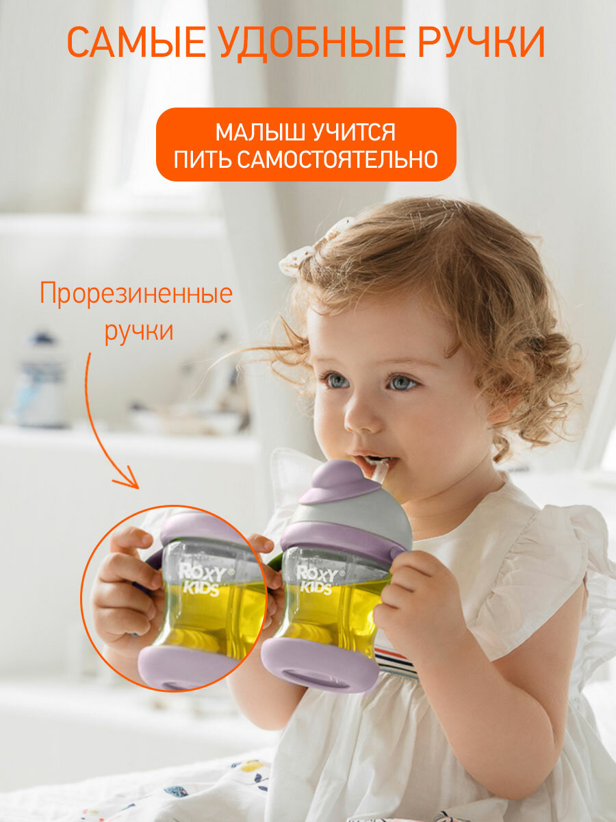 10 цен на Поильник-непроливайка ROXY-KIDS с трубочкой 200 мл цвет серый лавандовый