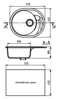 Кухонная мойка, раковина, Ника 570, искусственный камень, графит