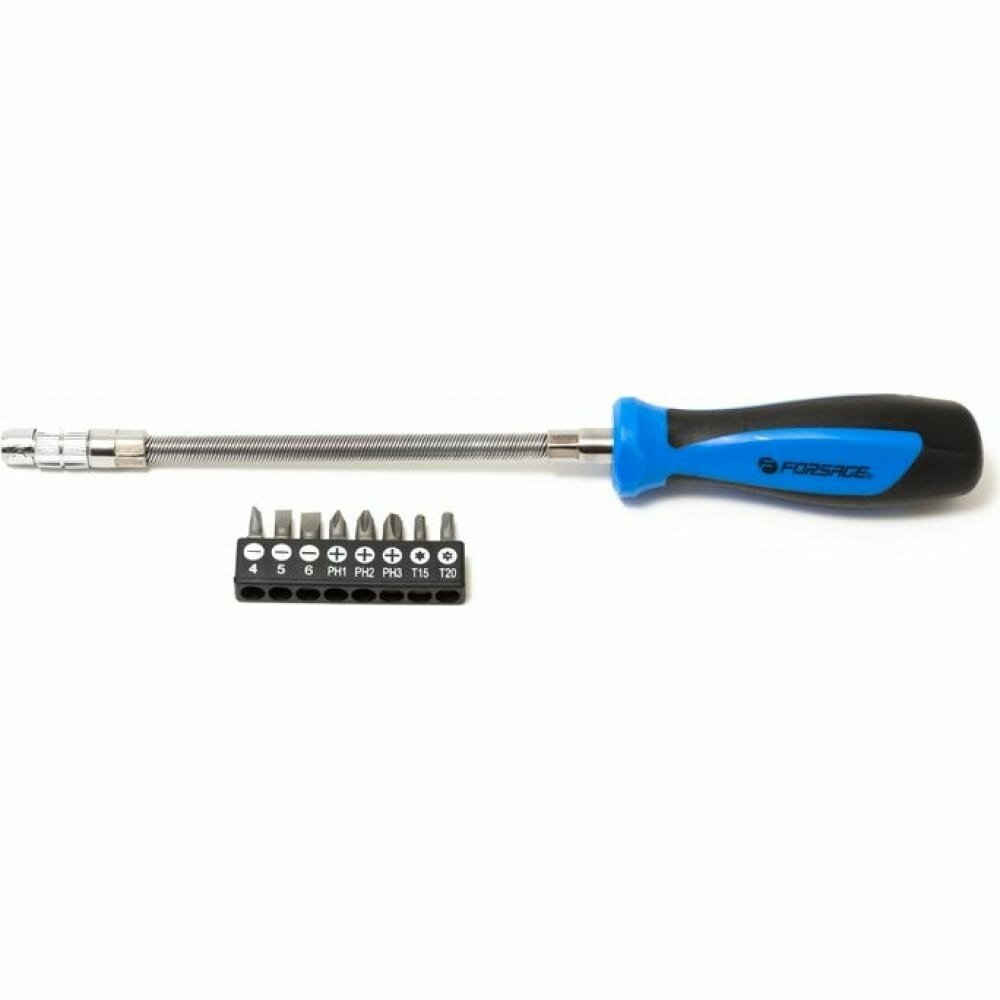 Отвертка-битодержатель гибкая с набором бит, 9пр.CrV6150(PH:1,2,3,SL:4,5,6мм,T:15,20,L:285мм)в блистере Forsage F-811309