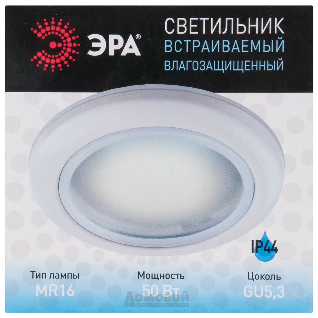 (18 шт.) Влагозащищенный встраиваемый светильник ЭРА WR1 WH, для ламп с цоколем GU5.3, тип ламп MR16, макс. 50 Вт, напряжение 12 В, белый, матовое влагозащищенное стекло, размер 92x33мм, врезное отверстие 70мм 4 857 ₽