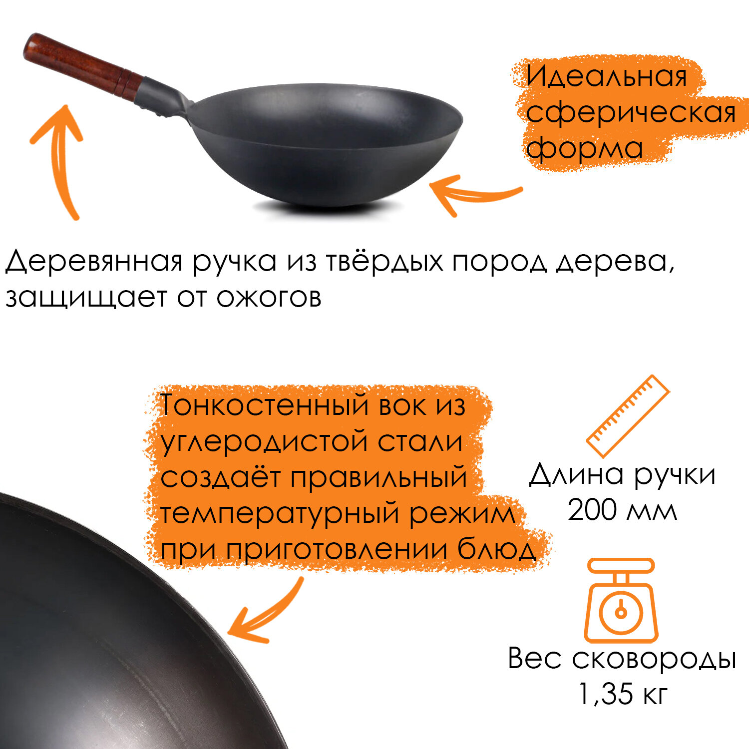 Сковорода-вок (Wok) стальная GetHof BlackStyle с деревянной ручкой 34 см информация:
