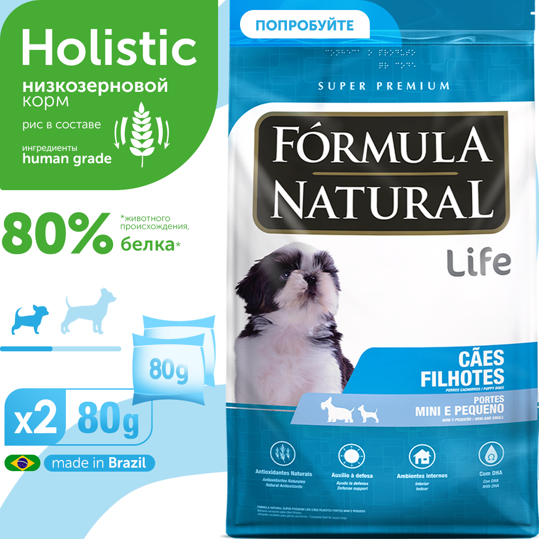 Сухой корм для щенков маленьких и мини пород, Formula Natural Life Super Premium - низкозерновой, полнорационный, с курицей, Бразилия, 80 гр 128 ₽