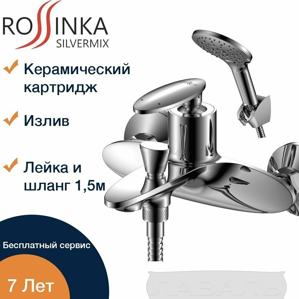 Смеситель для ванны с душем, хром, лейка и шланг 1,5м (Rossinka RS30-31)