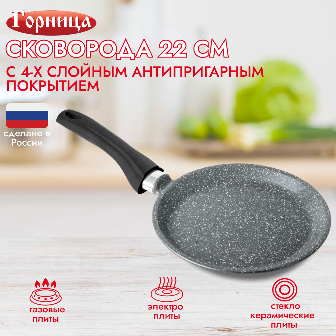 Блинница 22 см с антипригарным покрытием сковорода для блинов и оладьев информация: