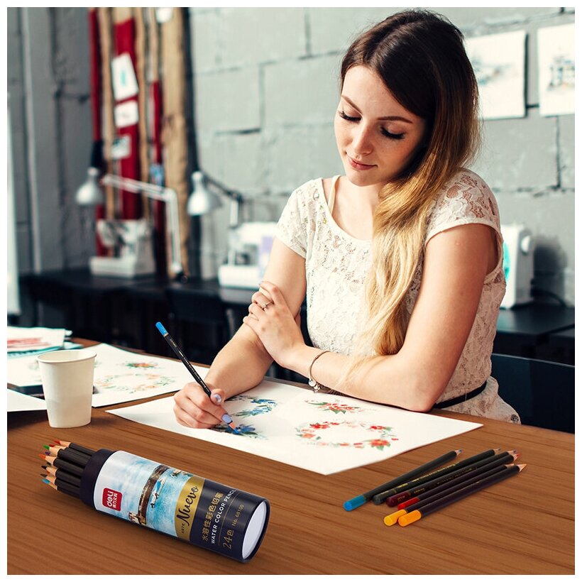 Карандаши цветные акварельные Deli 24 цвета, липа (EC00720/A)