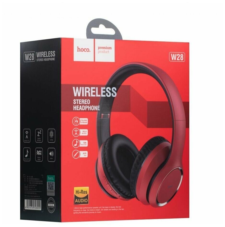 Наушники W28, HOCO, беспроводные, красные, арт.55013072