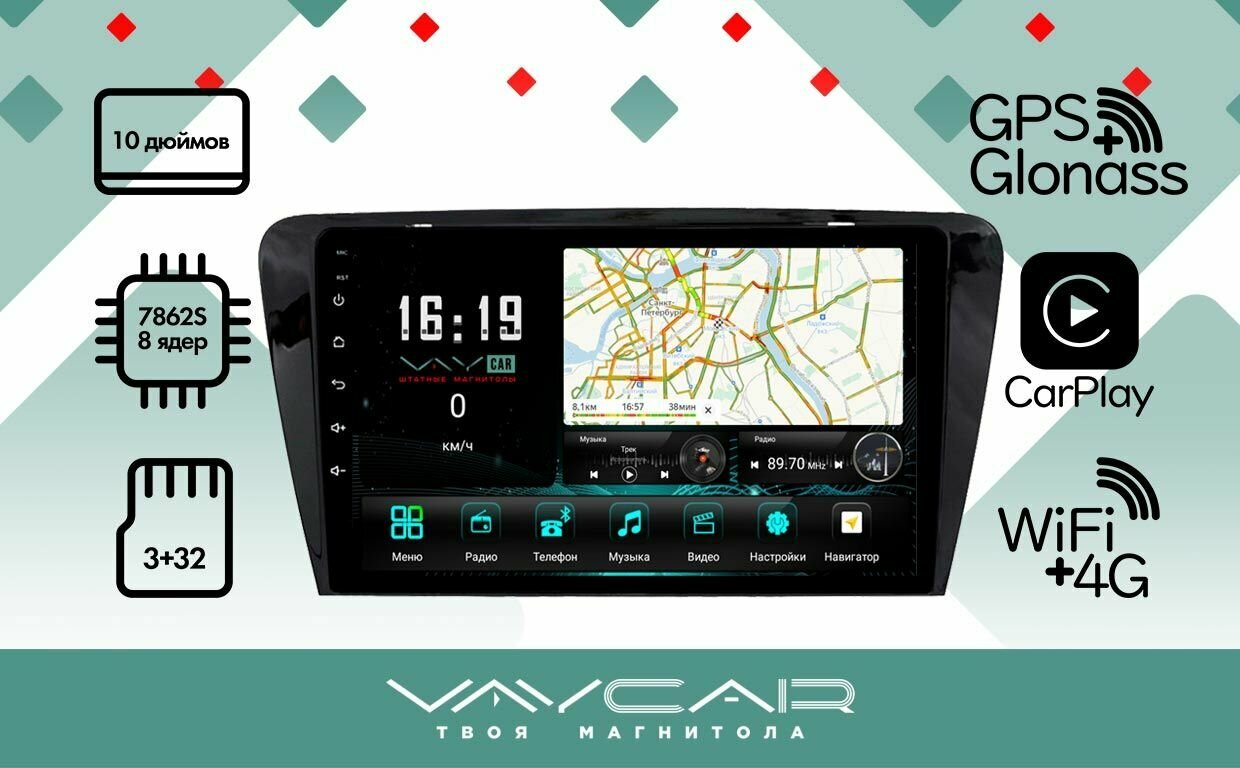 Магнитола Vaycar 10V3 для SKODA Octavia A7 2013-2019 Андроид, 3+32Гб информация:
