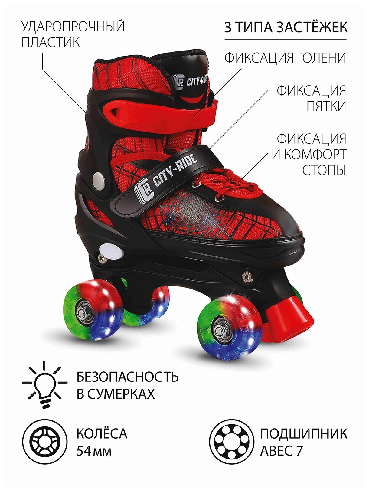 10 цен на Роликовые коньки детские, квады, ТМ "CITY-RIDE", с передним тормозом, PVC колеса, все колеса светящиеся, размер S (29-33), раздвижные, JB0206052
