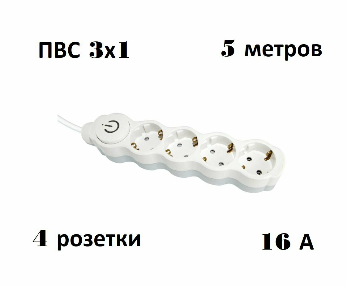 Отзывы на Удлинитель бытовой "Люкс" Ул04в выкл, 4 гнезда, 5м, с/з, с з/ш, ПВС 3х1мм2 16А/250В бело-серый SQ1 .