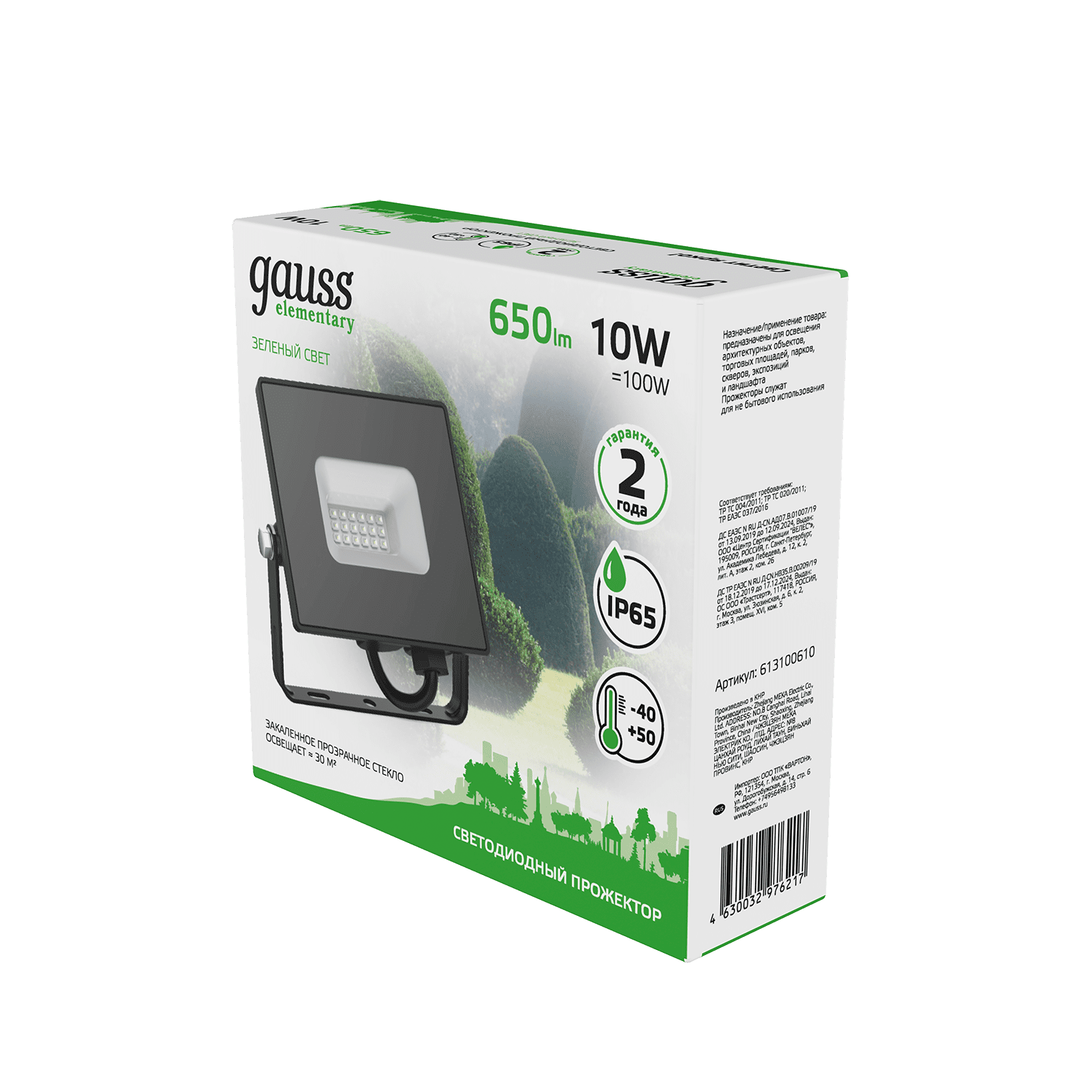 Прожектор светодиодный Gauss Elementary 10W 613100610 информация: