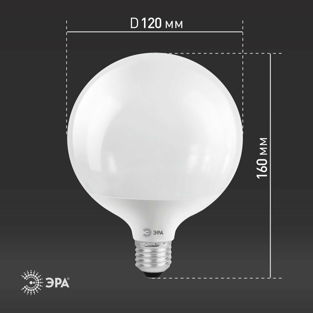 Лампочка светодиодная ЭРА STD LED G120-20W-6000K-E27 Е27 20Вт шар холодный дневной свет арт. Б0049082 (1 шт.) информация: