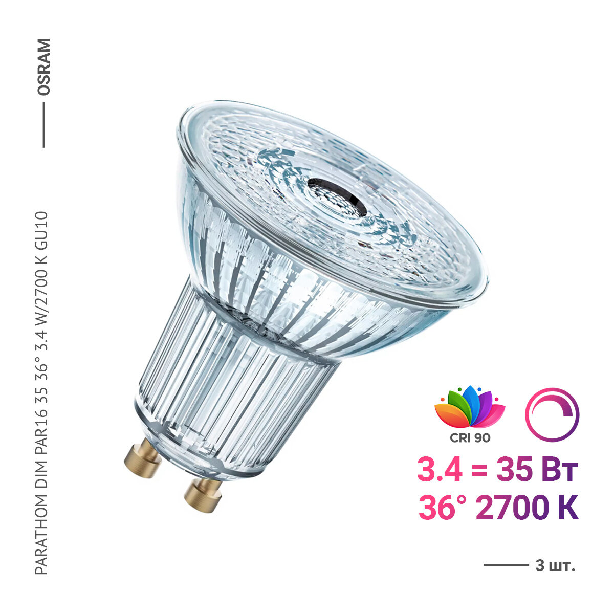 10 цен на Osram / Ledvance PARATHOM DIM PAR16 35 36° 3.4 W/927 GU10 (3 шт.)