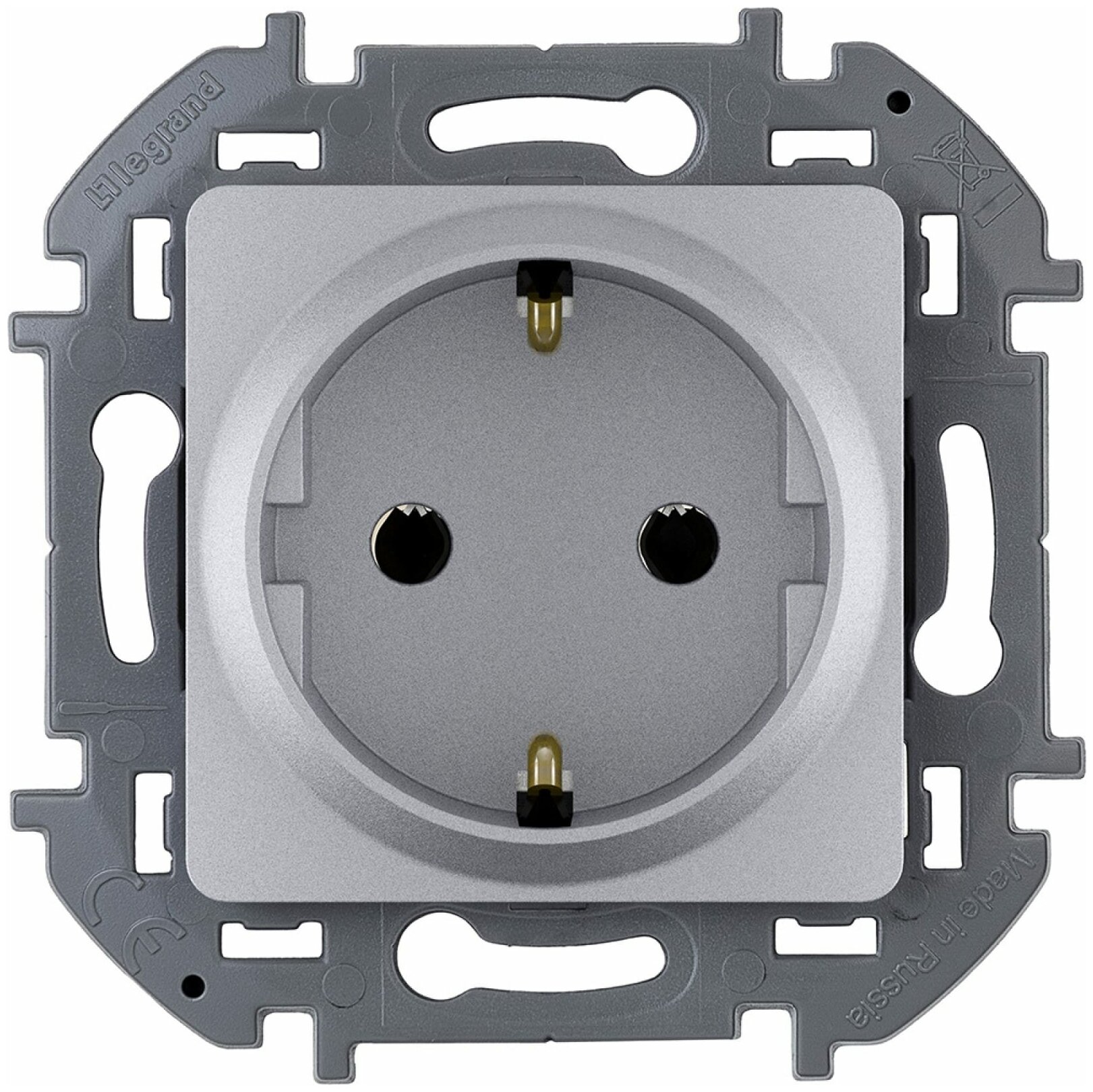 Розетка силовая штепсельная Legrand / Легранд Inspiria IP20, алюминий 1-местная с заземляющими контактами, скрытая установка, 673722 / электрооборудование 567 ₽