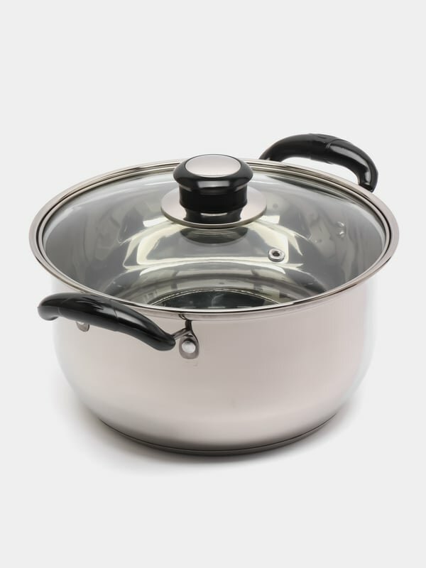 Белая калитва Кастрюля, 6 л, полусферическая, металлическая крышка, цвет хромированный